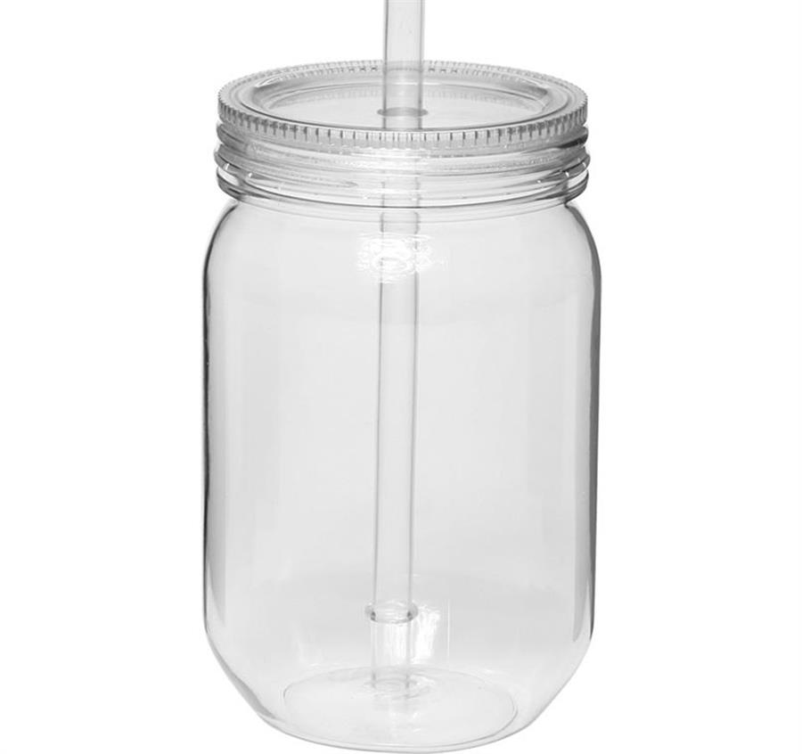 24 oz. Single Wall Plastic Mason Jars AS Plastic Material With Screw-on Lid and Straw Hand Wash Only Note: Do not microwave