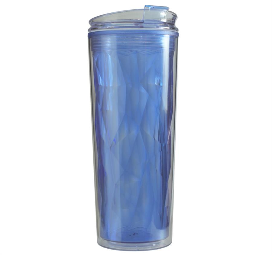 20 oz. Plastic Travel Mug, Double Wall, Color Matching Lid, Clear Outer Wall, Acrylic