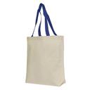 10 oz Cotton Canvas Tote Bag with 22" contrasting polypropylene color webbed handles with a 10" drop, 3" bottom gusset