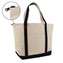 16oz XL Zippered Cotton Canvas Resort Tote Bag with a gusseted bottom, Zippered top for secure closure, Stands up right with a flat bottom, 22.5" handles with a 10" drop, Exterior pocket 8" H x 8" W, Interior accessories pocket with key fob