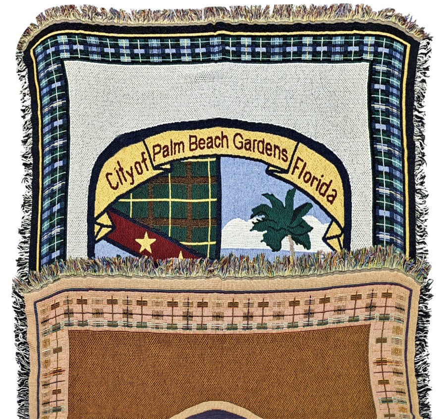 Jacquard Woven Throws. The front of throws is woven with a design while the back of throws is a reverse of the front.