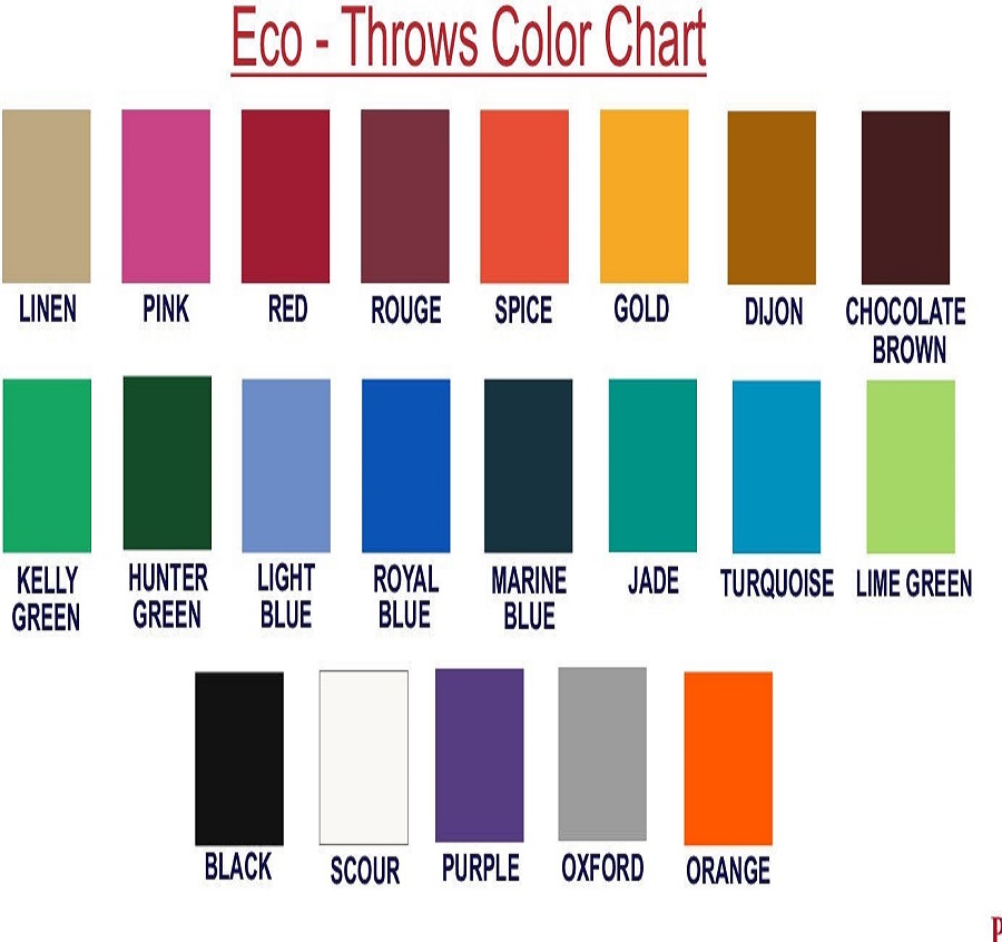 Linen, Pink, Red, Rouge, Spice, Gold, Dijon, Chocolate Brown, Kelly Green, Hunter Green, Light Blue, Royal Blue, Marine Blue, Jade, Turquoise, Lime Green, Black, Scour, Purple, Oxford, Orange.
